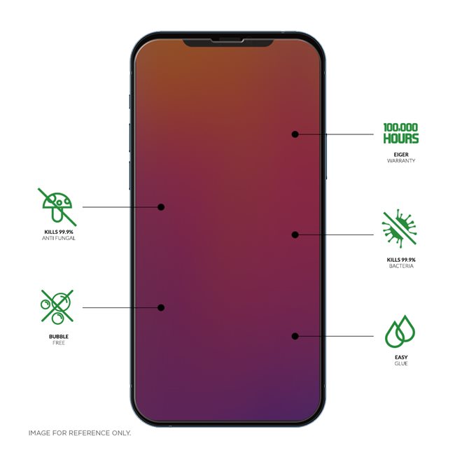 Das Eiger Mountain-Displayschutzglas wird aus hochqualitativem gehärtetem Glas hergestellt, bietet exzellenten Schutz vor Kratzern & Stössen und hat zudem antimikrobielle Eigenschaften. Die antimikrobielle Technologie ist direkt in das Glas eingearbeitet (es handelt sich nicht um eine Beschichtung) und tötet 99.9% aller bekannten Oberflächenbakterien und Pilzsporen ab.