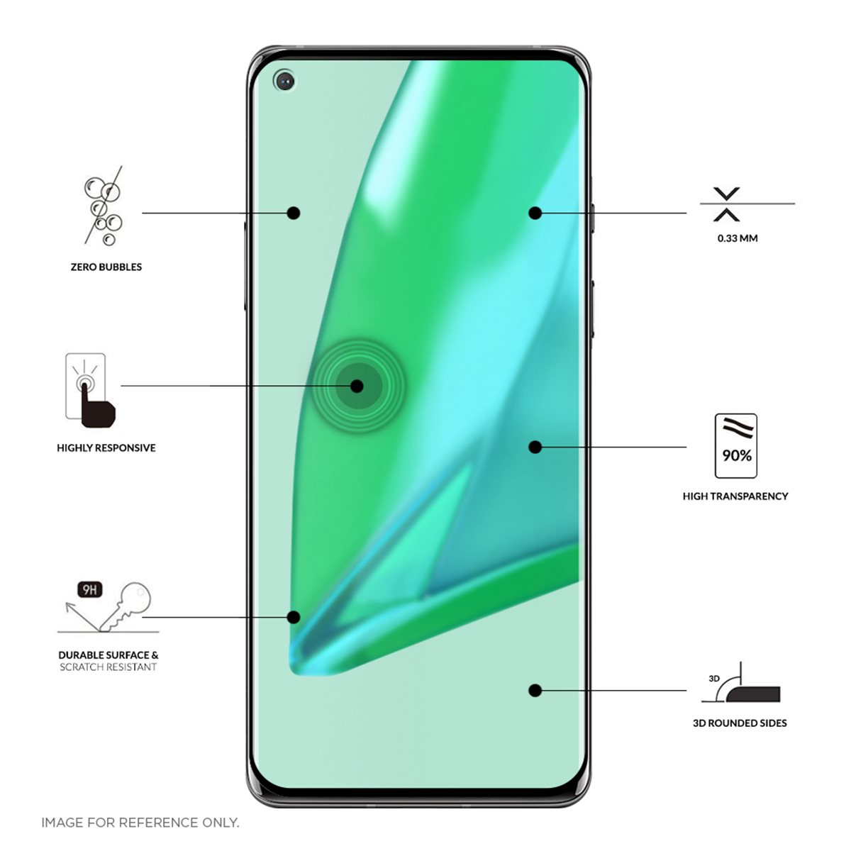 - Hochtransparentes, ultradünnes Glas, das eine klare Anzeige des Displays ermöglicht und die Touchscreen-Nutzung nicht einschränkt