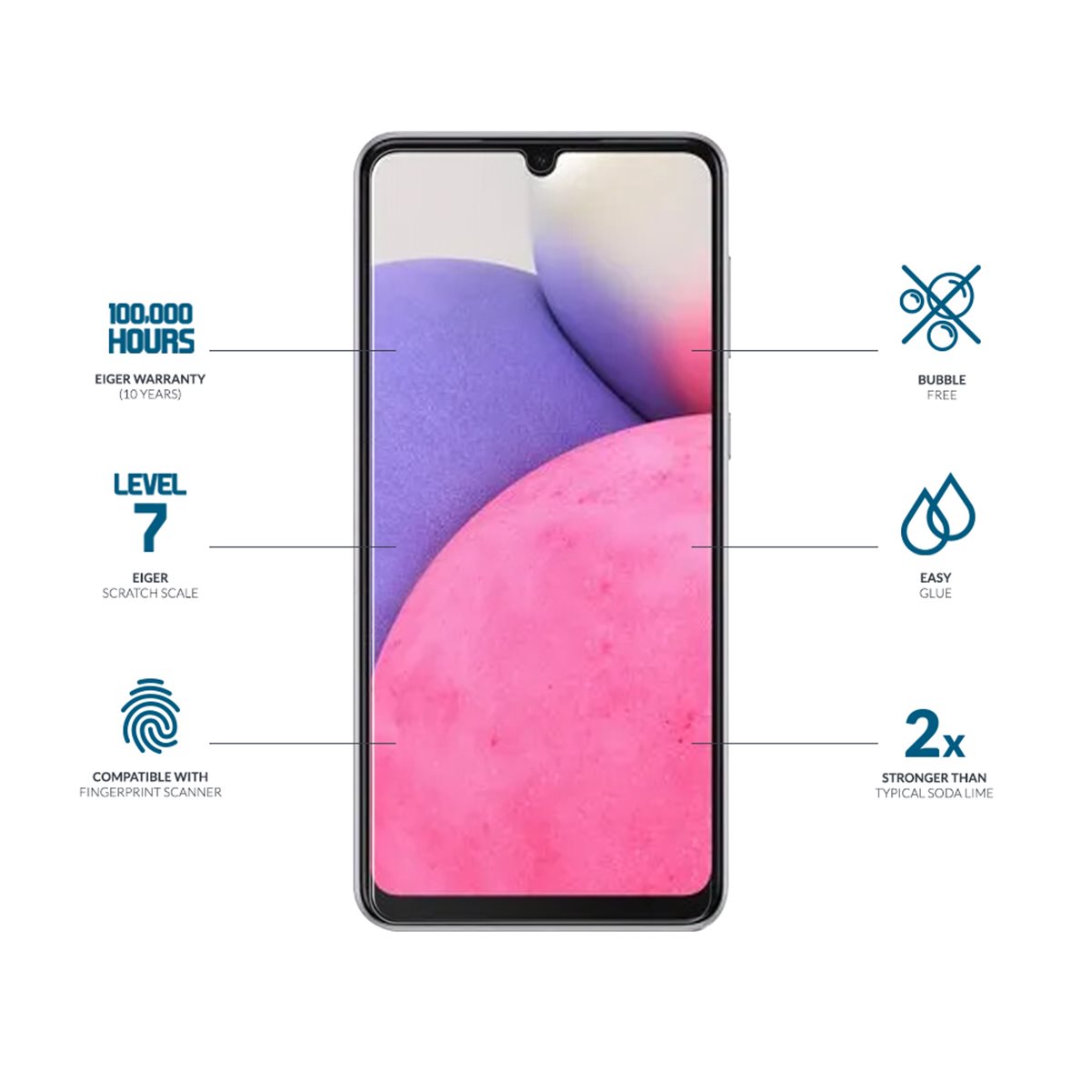 100‘000-Stunden-Eiger-GarantieEiger setzt auf Qualität und bietet eine 100‘000-Stunden-Garantie (10 Jahre) für Herstellungsfehler, wie Material- und Verarbeitungsfehler. Sie erhalten ein Ersatzprodukt, falls Ihr Eiger Mountain Glass-Displayschutz Mängel aufweisen sollte*.