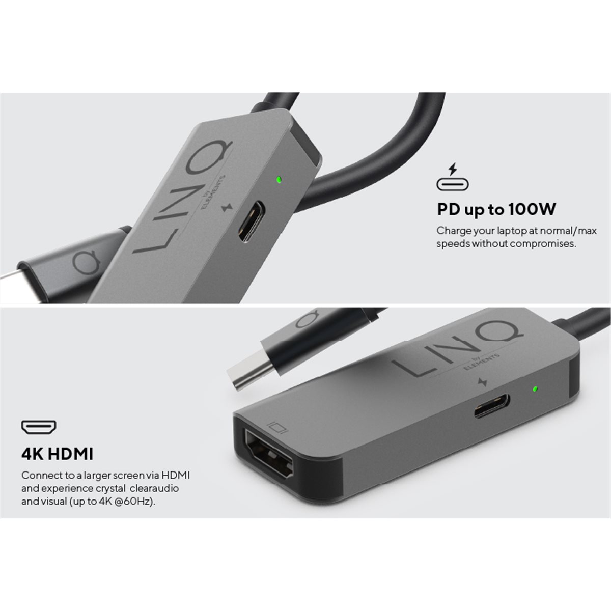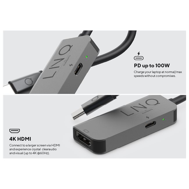 Dieser kompakte 2in1 4K-HDMI-Adapter ist ultraportabel und wurde als Hybridlösung für die Arbeit von zu Hause und unterwegs entwickelt. Er bietet zwei wichtige Anschlüsse für Ihr Notebook, Tablet oder Smartphone. Hochauflösender HDMI 4K/60Hz Ausgang und 100W PD Charging.