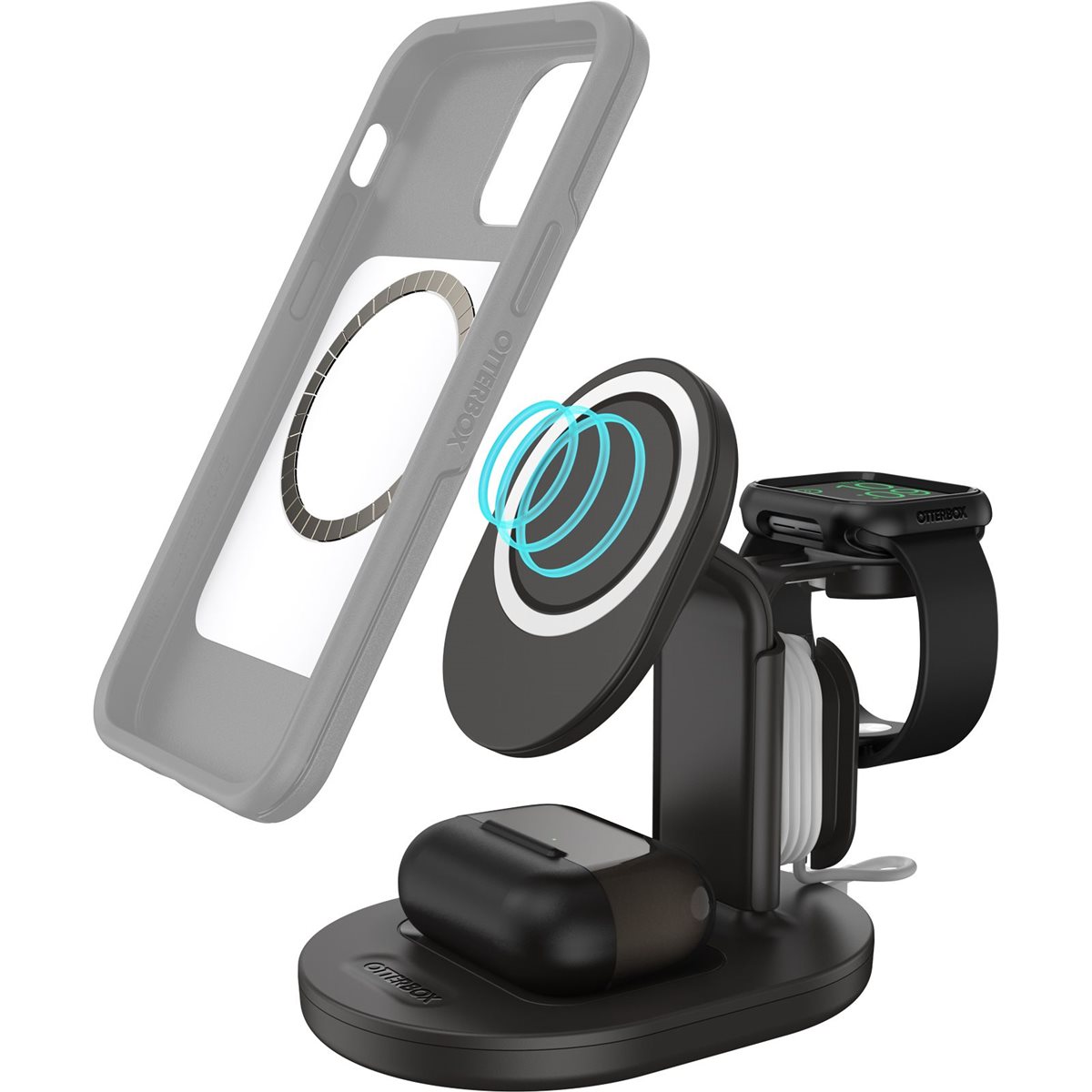 - Kabelloses Laden von iPhone und AirPods, einschliesslich Apple Watch Ladegerät (Apple Watch Ladegerät wird separat verkauft. Nur kabellos aufladbare AirPods-Hüllen sind kompatibel)