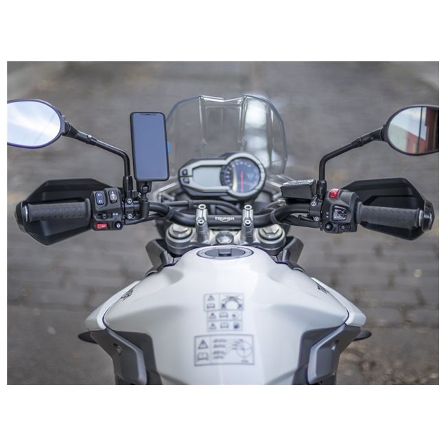Das starke patentierte zweistufige Schloss gibt Dir die Gewissheit, dass Dein Handy auf Deinem Motorrad sicher bleibt, ohne dass Du lästige Haltebänder, Riemen, Bänder oder Magnete benötigst. Egal, in welchem Terrain.
