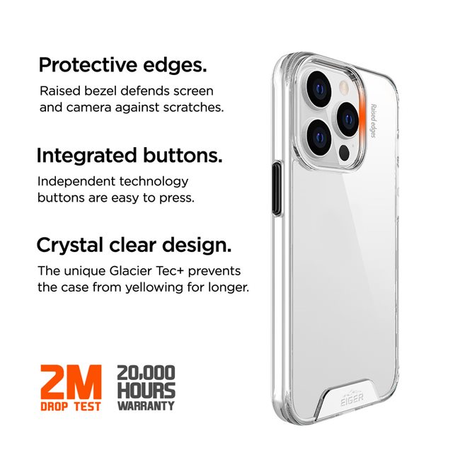 The Eiger Glacier Case has been designed and tested to withstand drops from 2m (6.6feet), and the raised bezel edges help protect your display.